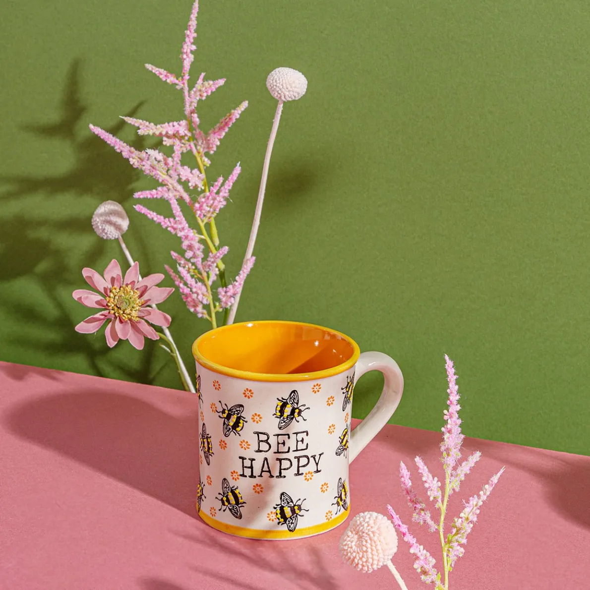 Create warmth and a buzz in the kitchen with this uplifting Busy Bee mug. Catch the nectar with honey hues, a repeat pattern of our hand-stamped design and the quote ‘bee happy’. Bring the bumble of the beloved bee to yourself or as a gift to someone special.