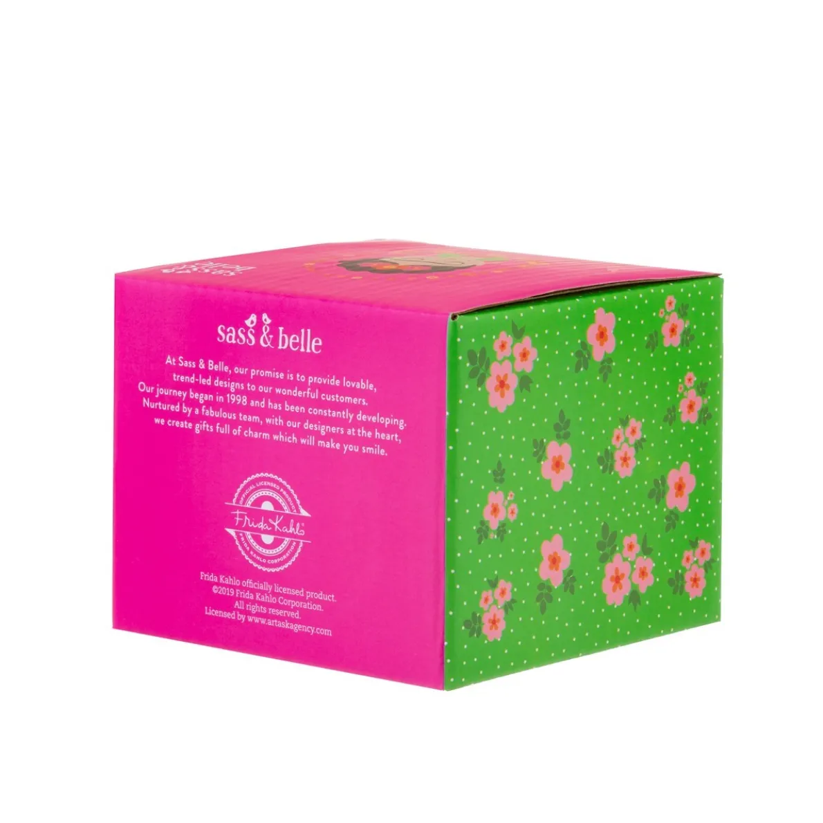 Your friends will envy your indoor garden even more with this charming mini planter, featuring our vibrant Frida with blushing cheeks, fluttery lashes and a garland of pretty flowers in her black hair. A small but impactful addition to your plant corner.