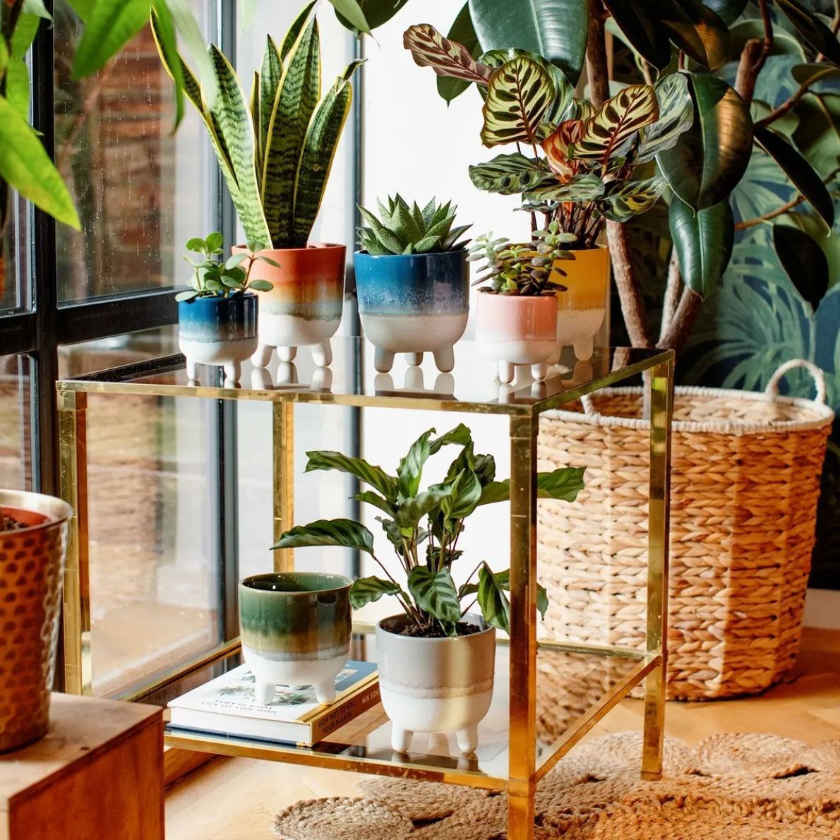 Add a touch of bohemian spirit to your indoor garden with this large tonal grey planter, standing on three textured legs. The rustic texture and dip ombre effect is created from a reactive glaze technique which forms subtle variations in colour tones, making each one beautifully unique. Completed with a gloss finish.