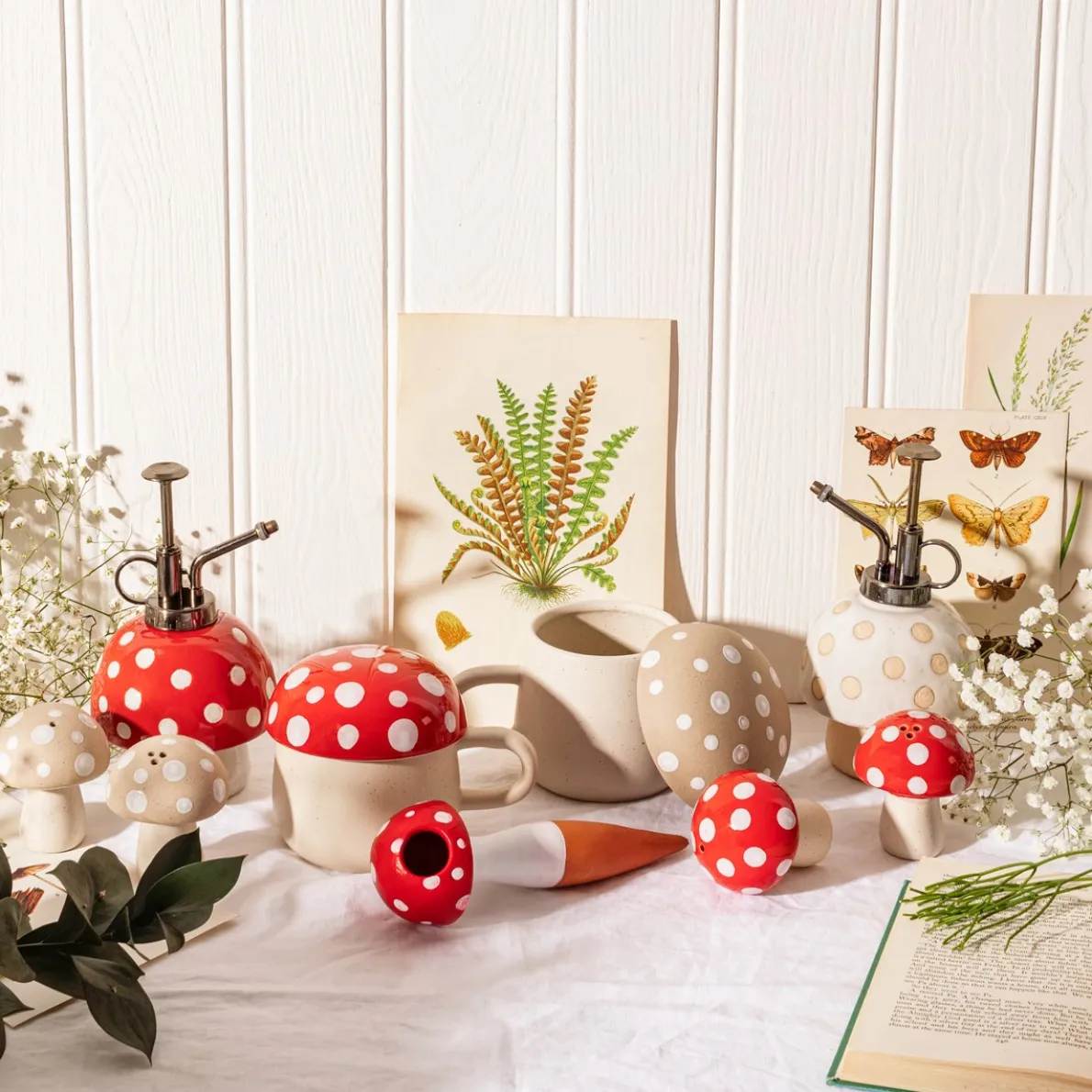 This Red Mushroom Mug with Lid will brighten up your kitchen. A fun addition to the Cottage Garden collection, the mug has a stylish design and is accented with red.