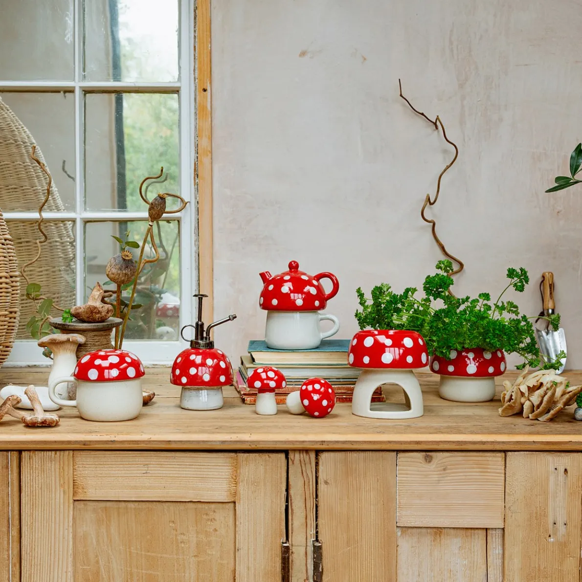 Add a touch of whimsy to your kitchen with our ceramic mushroom-shaped teapot. Part of our Cottage Garden collection, this red and white teapot is a wonderful, affordable gift or a great addition to your collection of kitchen accessories.